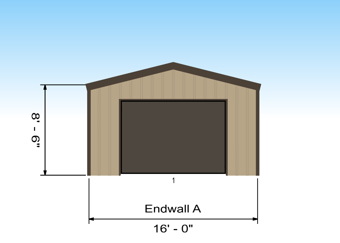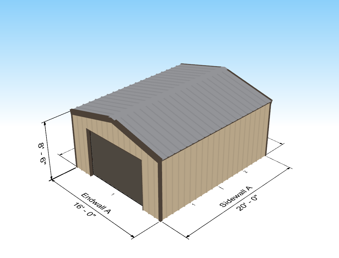 16' wide x 20' long garage/workshop kit with 10' x 7' garage door.